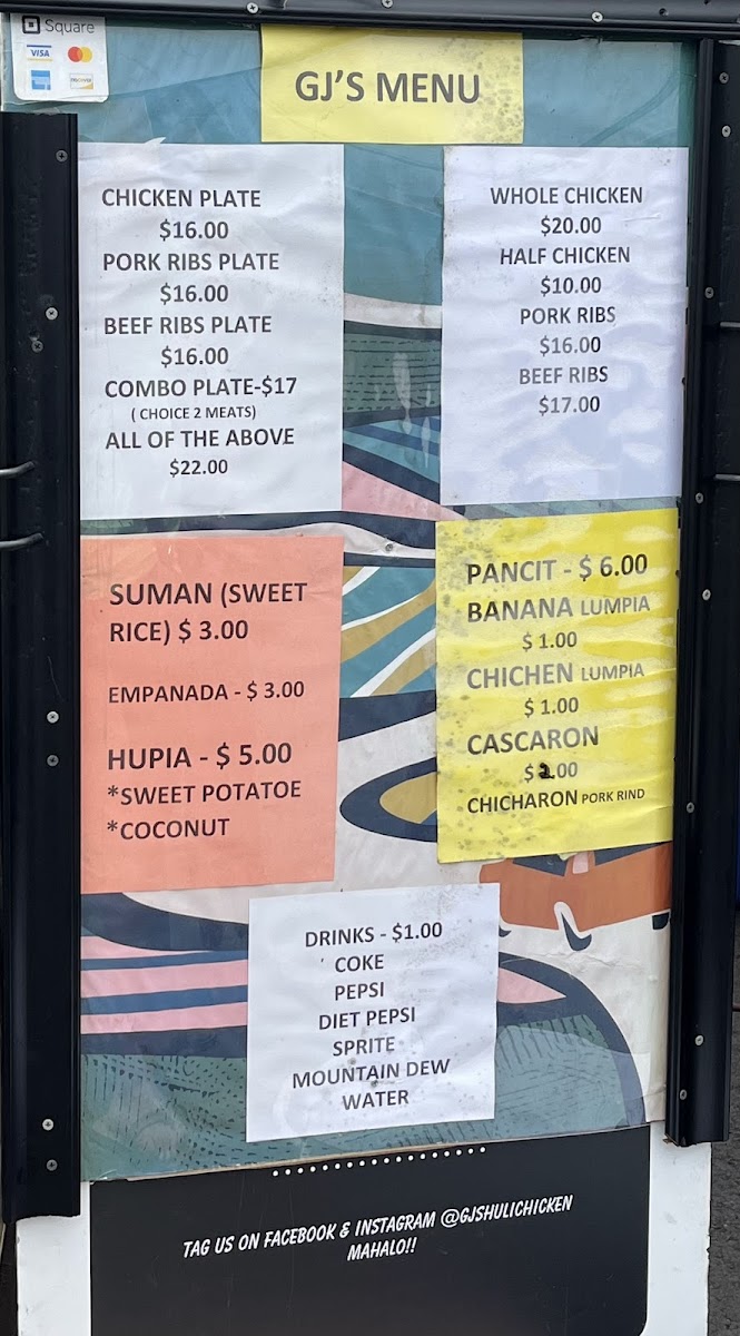 With its variety of flavorful dishes and generous portions, Gj's Huli Chicken is a go-to spot for anyone in Waimea craving delicious, comfort food with a unique blend of flavors.